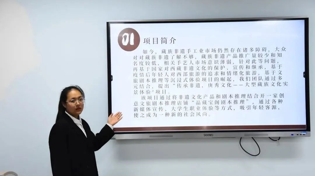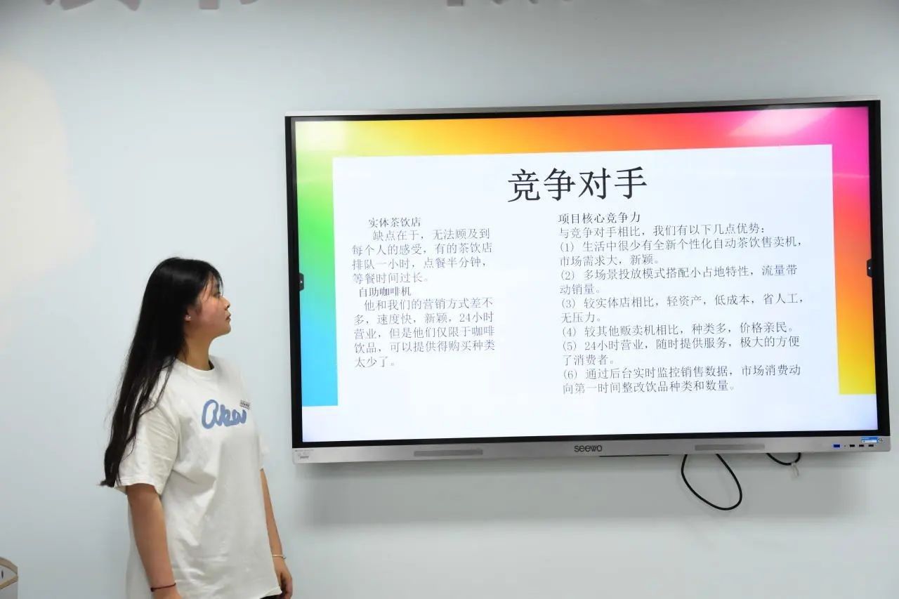 本次评审共有21支团队进行了项目路演。选手们在舞台上泰然自若、侃侃而谈,充分描述项目作品的优势和创新创意点,给观众带来精彩的演绎和讲解。他们用赤诚真心凝聚汗水,用创新创业汇聚力量,为亚欧语言文化学院的莘莘学子树立榜样,在青春的舞台上展现出靓丽风采。