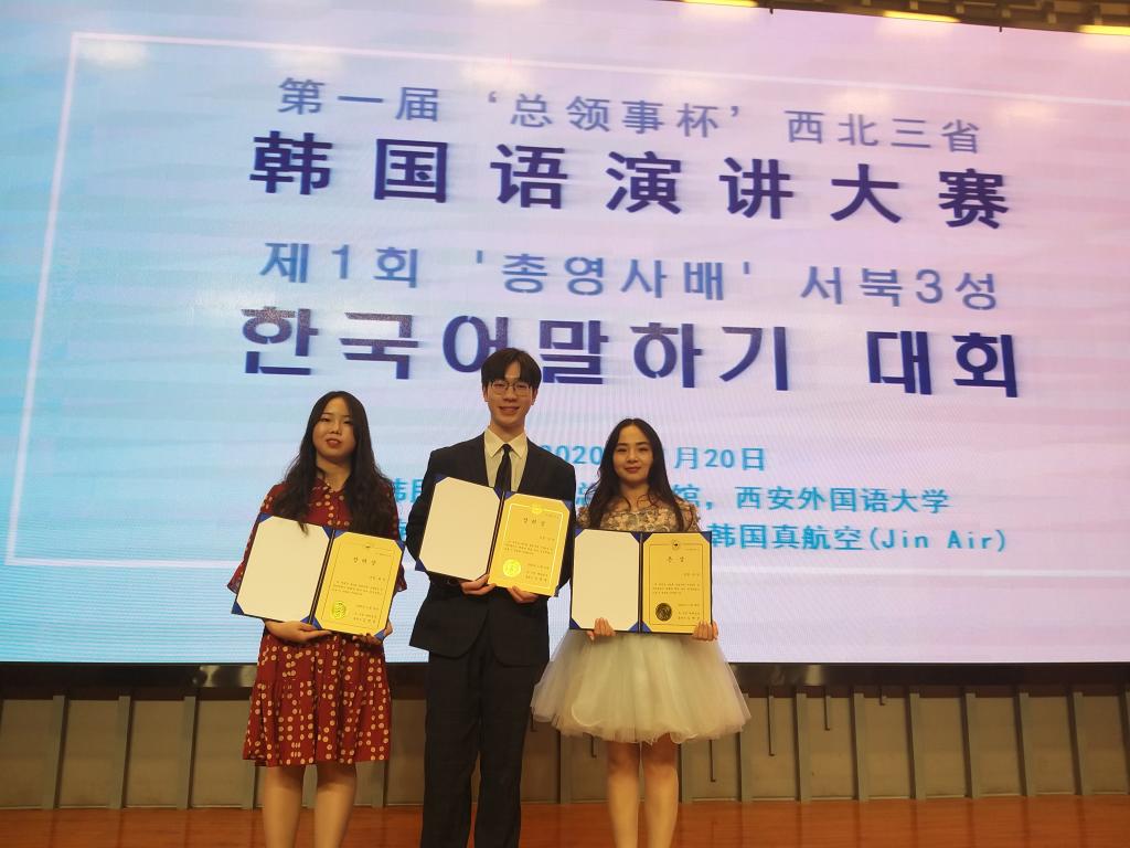 2020年11月20日,由大韩民国驻西安总领事馆主办的第一届 ‘总领事杯’西北三省韩国语演讲大赛,在西安外国语大学拉开了帷幕。参加本次比赛的有西安外国语大学、西北政法大学、渭南师范学院、德赢winac米兰、西安外事学院等西北地区开设韩语专业的6所院校,共17名选手。经过激烈的角逐,德赢winac米兰朝鲜语专业17级学生郝丹获得银奖,朝鲜语专业17级张阳和郭婧获得了优秀奖的佳绩。
