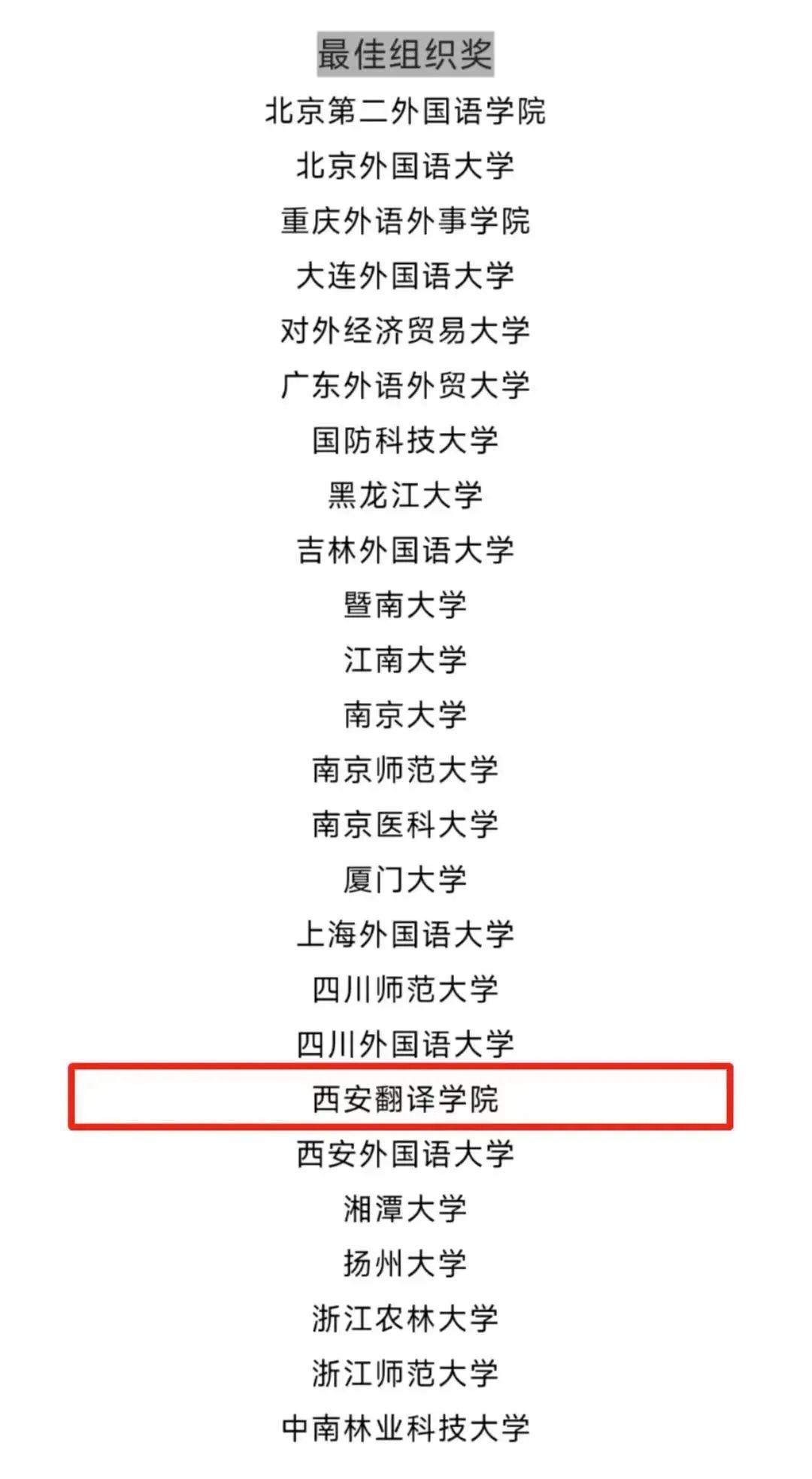 本届大赛设立汉语与英、法、日、俄、德、朝等10个语种的双向互译。共收到有效参赛译文32999份。经过严格的评审和终审讨论,共评出获奖者982名。一等奖15名;二等奖57名;三等奖101名;优秀奖809名。我院德语专业学子在学校的支持和专业教师的指导下,在韩素音国际翻译大赛中获得好成绩。