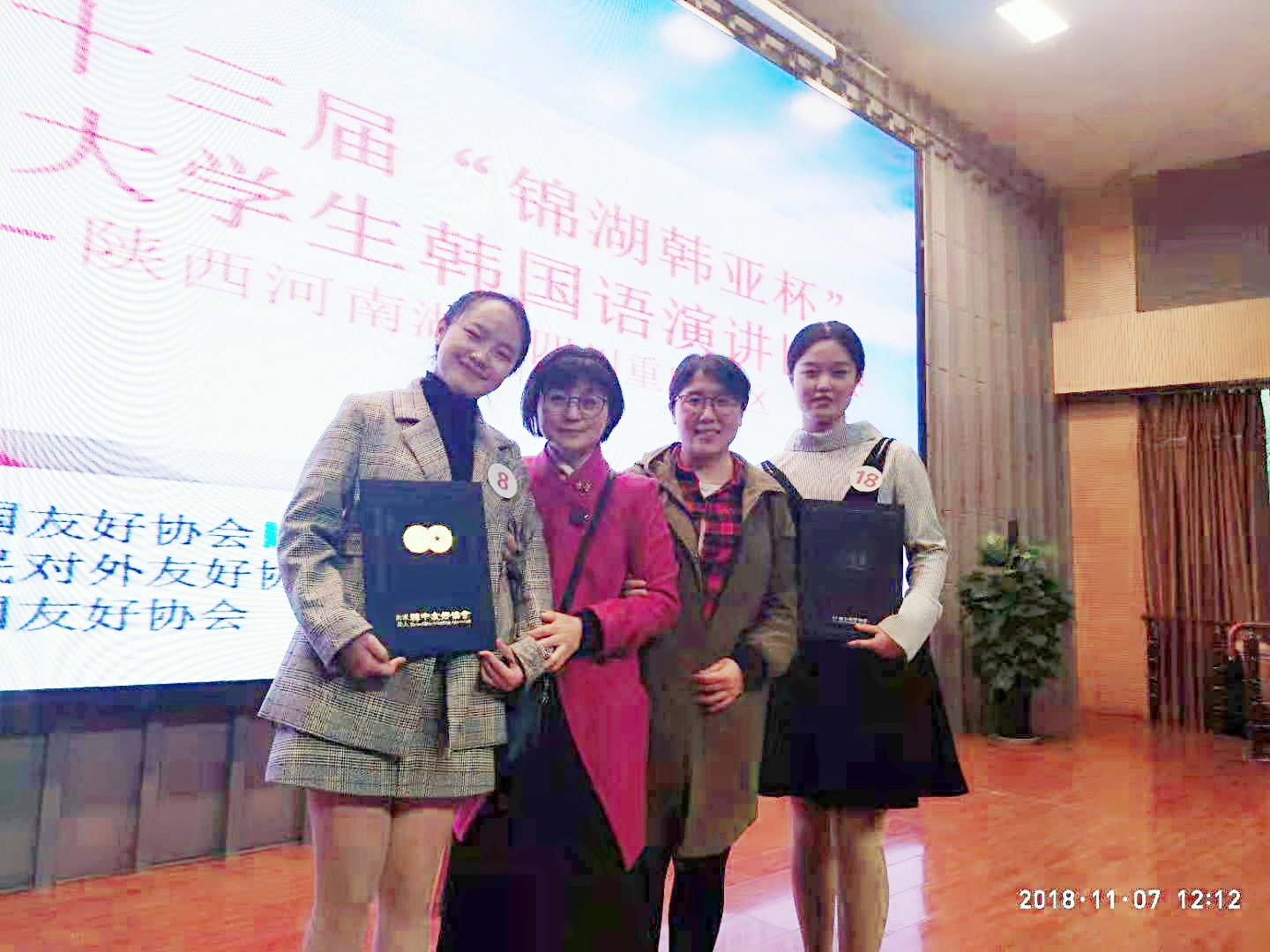 2018年11月7日,第十三届锦湖韩亚杯中国大学生韩国语演讲大赛(陕西、河南、湖北、四川、重庆赛区)在西安外国语大学举办,西安外国语大学,四川外国语大学,西南民族大学,西北政法大学等10所院校20名学生参赛。德赢winac米兰学生15级学生王品懿、李卓奚代表学校参加比赛,经过激烈角逐分别获得三等奖(第三名)、优秀奖的佳绩。