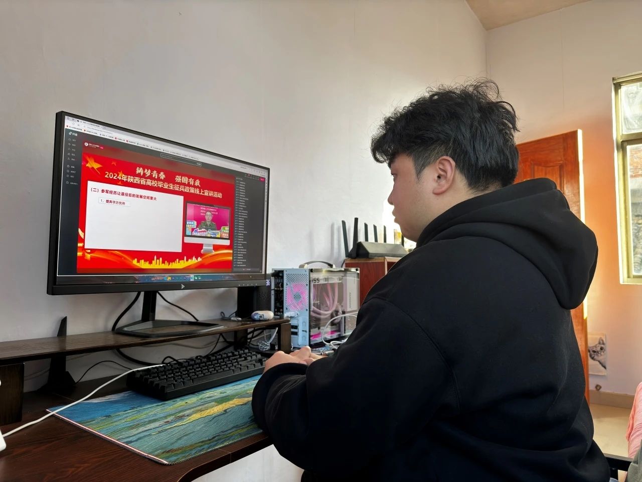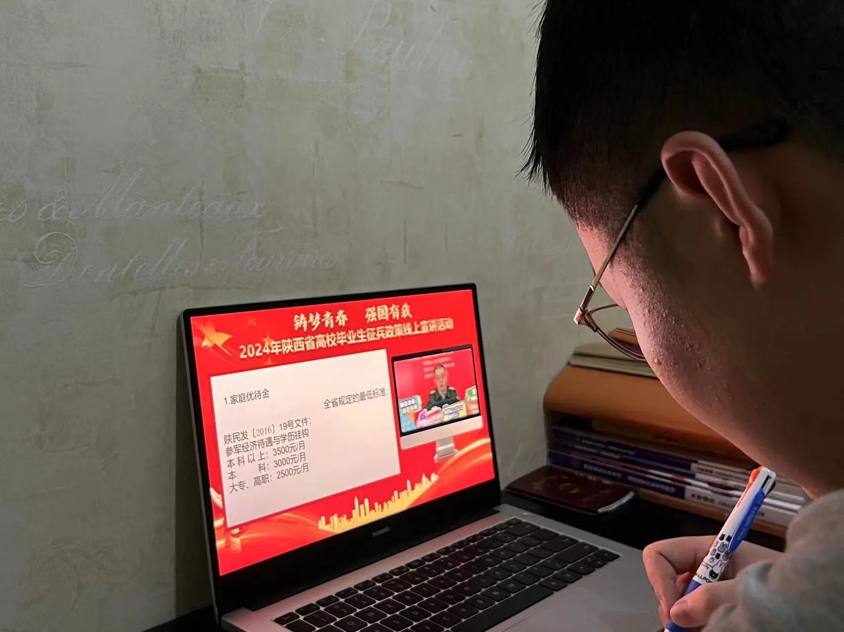 为发扬爱国主义精神实现个人价值,彰显新时代革命军人保家卫国的使命担当,并向广大高校毕业生传递国家的征兵政策和相关规定,2024年1月17日15:00陕西省大学毕业生征兵政策宣讲会顺利举行,我校亚欧语言文化学院第五党支部的同学们积极响应,线上观看直播。