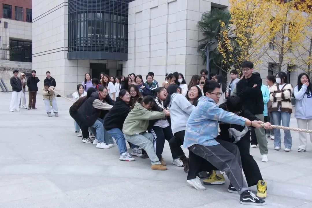 各班参赛的同学们谨遵院长的教诲,秉持着友谊和安全第一,比赛第二的原则,在赛场上尽情的挥洒汗水,紧握长绳,拼尽全力,为自己班级争光。