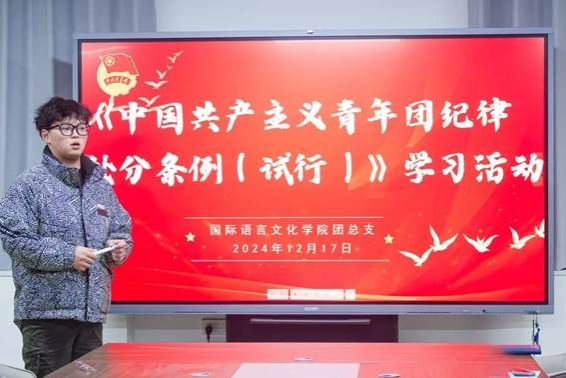 近日,共青团中央印发了《中国共产主义青年团支部纪律处分条例(试行)》(以下简称《条例》),并发出通知,要求各级团组织认真遵照执行。《条例》的制定是为了严肃团的纪律,纯洁团的组织,保障团员民主权利,教育团员坚决拥护党的领导,遵守国家的法律法规,保证党的路线、方针、政策和团的决议的贯彻执行。团的纪律建设必须坚持党的领导,坚持以马克思列宁主义、毛泽东思想、邓小平理论、“三个代表”重要思想、科学发展观、习近平新时代中国特色社会主义思想为指导,落实党建带团建的各项要求和全面从严治团的各项部署。德赢ac米兰官方合作团总支于12月17日晚19:00在三号楼三楼会议室开展《中国共产主义青年团纪律处分条例(试行)》学习活动。