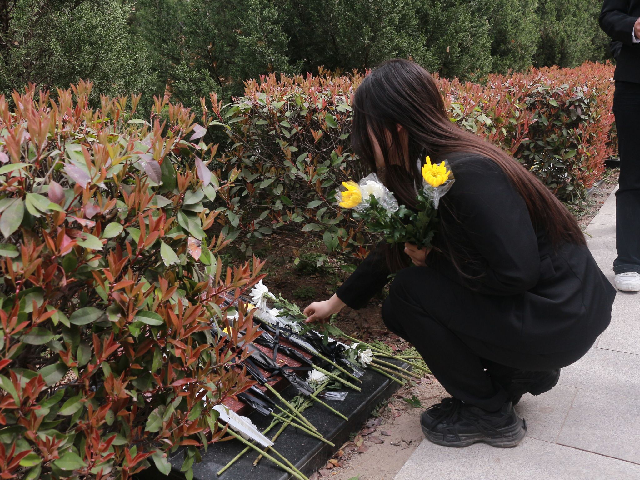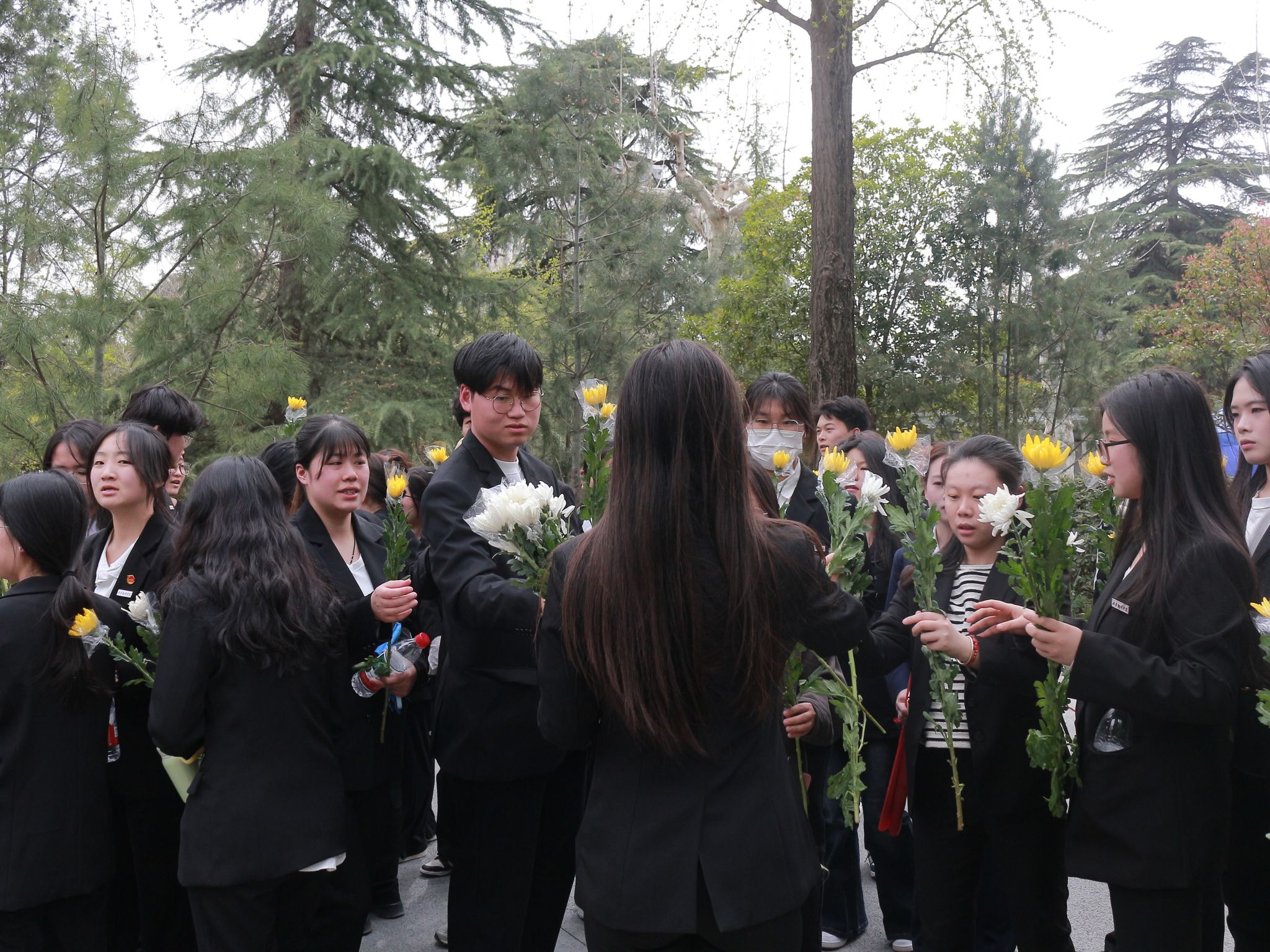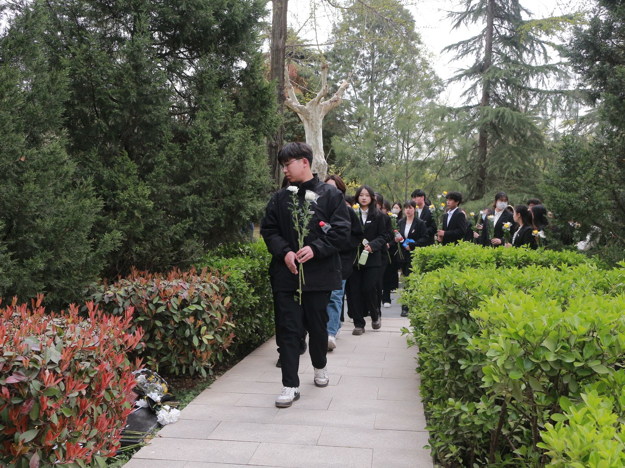 在肃穆的氛围中,我院师生代表怀着崇敬且沉重的心情,缓缓步入陵园。每个人手中,那洁白的菊花静静绽放,宛如师生们内心深处无尽的追思与敬意。师生们的脚步轻缓而沉重,眼神中满是对先烈的缅怀。他们依次走到墓碑旁,微微俯身,将手中的菊花轻轻放置,动作轻柔而虔诚。一方方碑文,上面镌刻的不仅是一段段波澜壮阔的历史,更是那些值得人们永远铭记的伟大精神。这些精神,如同一座座不朽的丰碑,激励着一代又一代的后人,在追求理想与光明的道路上,勇往直前,永不退缩 。