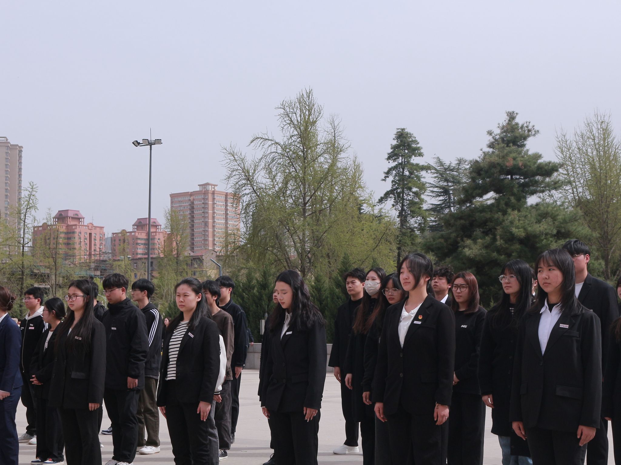鞠躬完毕,同学们垂首肃立,进入默哀环节。此时,整个世界仿佛都安静下来,唯有内心的哀思如潮水般涌动。在这静谧的时刻,同学们思绪万千,回想着英烈们为了国家的独立、民族的解放,不惜抛头颅、洒热血,用生命谱写了一曲曲壮丽的赞歌。默哀的每一秒,都是对历史的铭记,对英烈精神的传承。