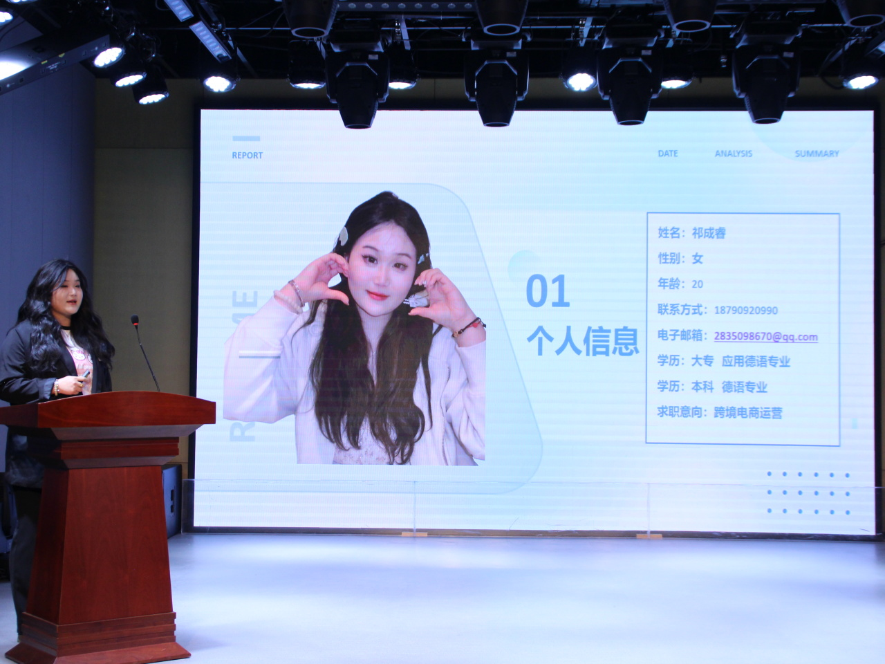 比赛现场,选手们各施所长。有的选手紧密结合过往实践经历,深入且透彻地阐述自己对目标岗位的理解与适配度。比如有的选手立志成为教师,在展示中着重分享自己在实习教学中的点滴,从精心备课、生动授课,到课后耐心辅导学生,凸显了自己具备的教育教学能力。有的选手凭借独特的设计思路和清晰的逻辑架构,让简历别具一格。新颖的排版、巧妙的模块划分,让人眼前一亮。大家充分施展专业知识和创新思维,用一场场精彩展示诠释了简历在求职中的重要意义。他们自信昂扬的神态、流畅自如的表达,不仅赢得了阵阵掌声,更使在场的观众和评委仿若透过他们,看到了未来职场人才济济、充满无限可能的繁荣景象。