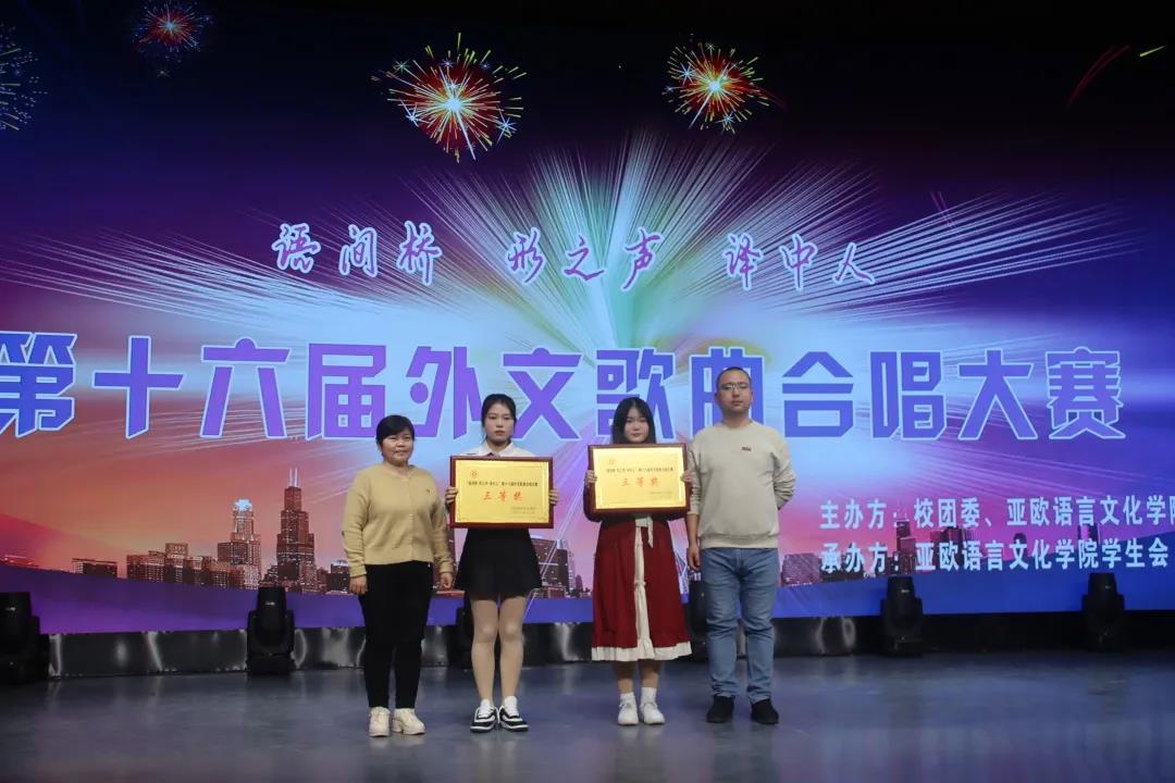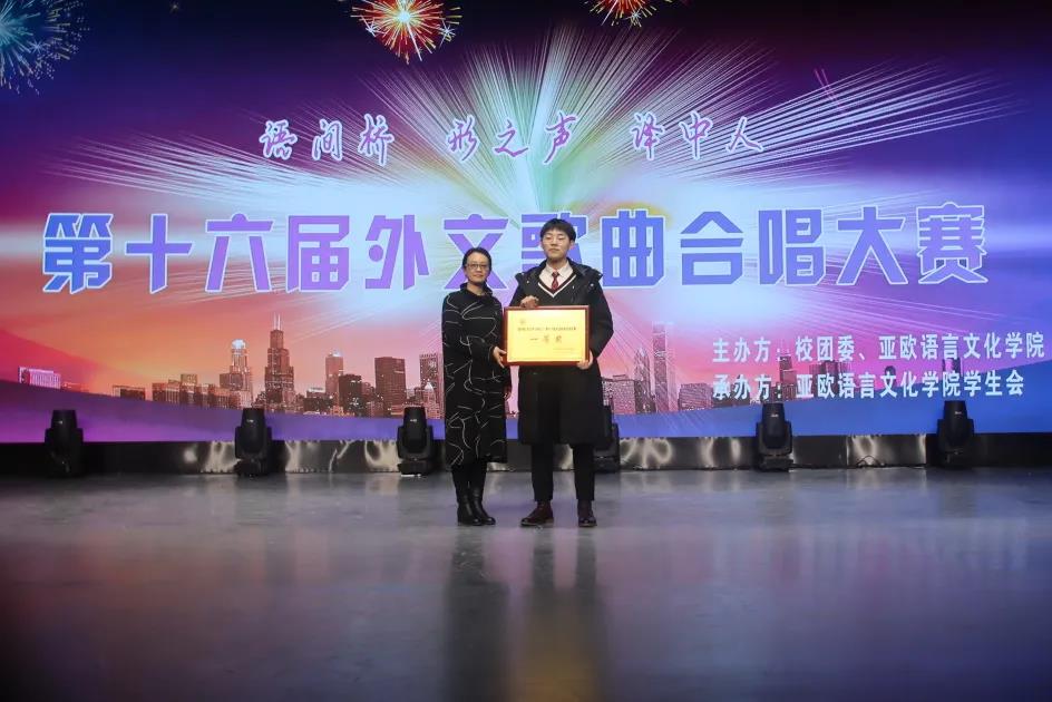 12月1日,由校团委、亚欧语言文化学院主办,亚欧语言文化学院学生会承办的“语间桥 、形之声、 译中人”第十六届外文歌曲合唱大赛在科技楼演播厅举行。