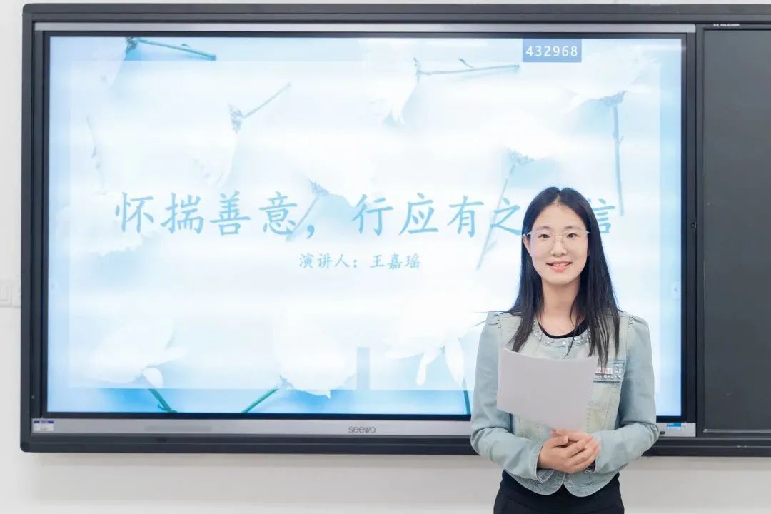 7号选手王嘉瑶带来了《怀揣善意,行应有之诚信》从善意、行动的角度强调了诚信的核心价值,阐述了诚信对于人际关系的重要作用以及如何在实践中发挥诚信的力量。该选手的演讲语言直接、内容丰富,观众也因此更加深入地认识到了诚信的实质意义。