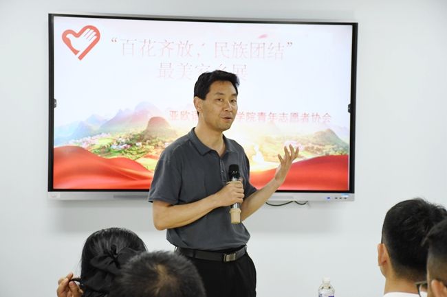 为引导各民族学生铸牢中华民族共同体意识,增强对中华文化、中华民族大家庭的归属感与认同感,加深各民族了解,促进各民族融通,6月14日下午,亚欧语言文化学院在三号楼举行“百花齐放,民族团结”最美家乡展活动。亚欧语言文化学院党委书记、副院长宇文永康,副院长魏海燕,综合办主任张青丽,学工办主任尹娜,团总支书记陈福礼及全体辅导员参加活动。
