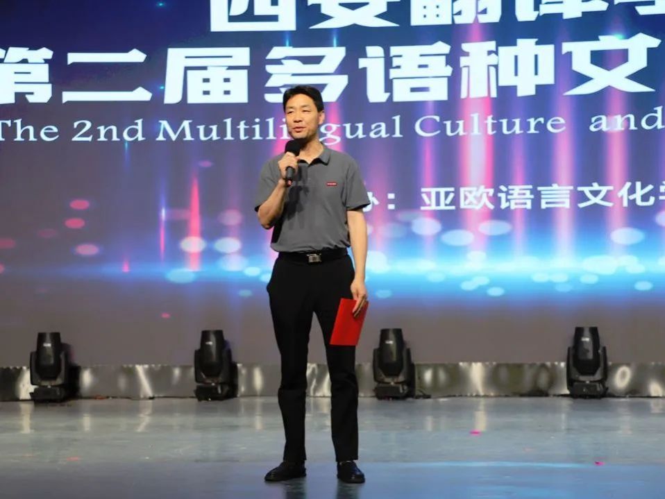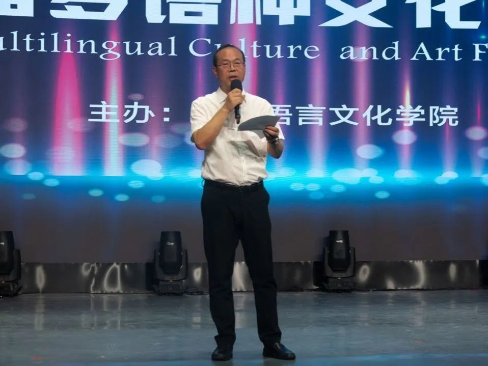 亚欧语言文化学院党委书记、副院长宇文永康宣布西译第二届“展语言之美 树文化自信”多语种文化艺术节圆满闭幕,文艺汇演就此正式落幕。