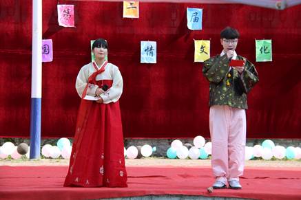 5月24日下午,由韩语教研室主办,17级韩语班承办的第二届韩国风情文化节在五号楼广场举行。亚欧语言文化学院院长杨达复、副院长富雅琳、东语系主任魏海燕、团总支书记陈福礼、韩语教研室各位老师及韩语专业部分学生到场观看。