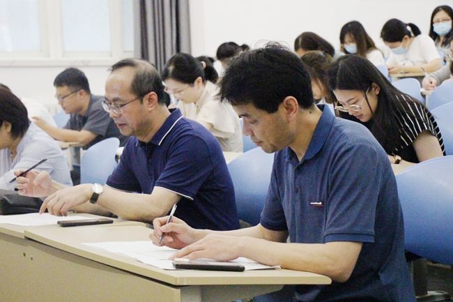 随后,全体教职工参加了师德师风应知应会知识测试。测试中,教职工严格遵守考试纪律,认真作答。