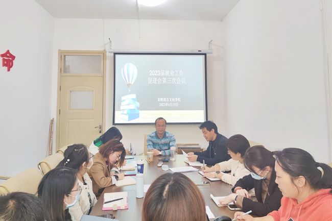 为进一步推进2023届毕业生就业工作,有效落实学校就业育人主题教育,促进高质量高水平就业,4月10日下午,亚欧语言文化学院召开2023届毕业生就业工作促进会第三次会议。亚欧语言文化学院院长李庆明,党委书记、副院长宇文永康,副院长吴震、魏海燕,综合办主任张青丽,学工办主任尹娜,各系主任及毕业班辅导员参会。