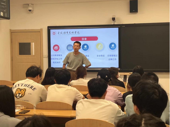 为全面做好本科教育教学审核评估工作,创建良好的班风、学风来迎接本年度的审核评估,使同学们认识到评估的重要性,知晓评估的内涵和意义,明确自己在评估中的责任与义务,亚欧语言文化学院各辅导员于开学第一周开展“迎审核评估,创优良风貌”迎评动员主题班会。