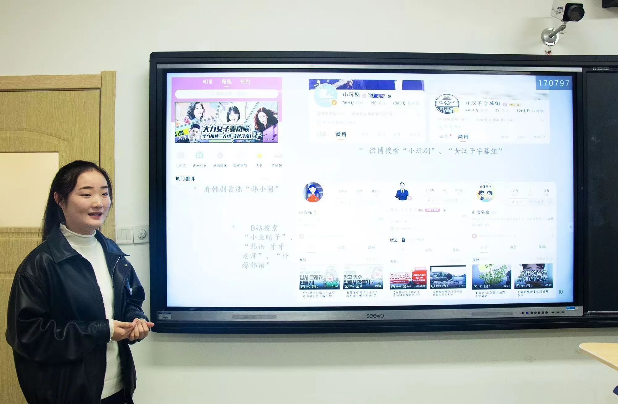 朝鲜语专业代表夏仁婧首先向新生们展示了朝鲜语专业的历史底蕴。她通过分享学习方法、学业规划,并结合丰富的校园活动和竞赛,为新生们描绘了一个立体而生动的朝鲜语学习蓝图,使新生对朝鲜语专业有了进一步认识。