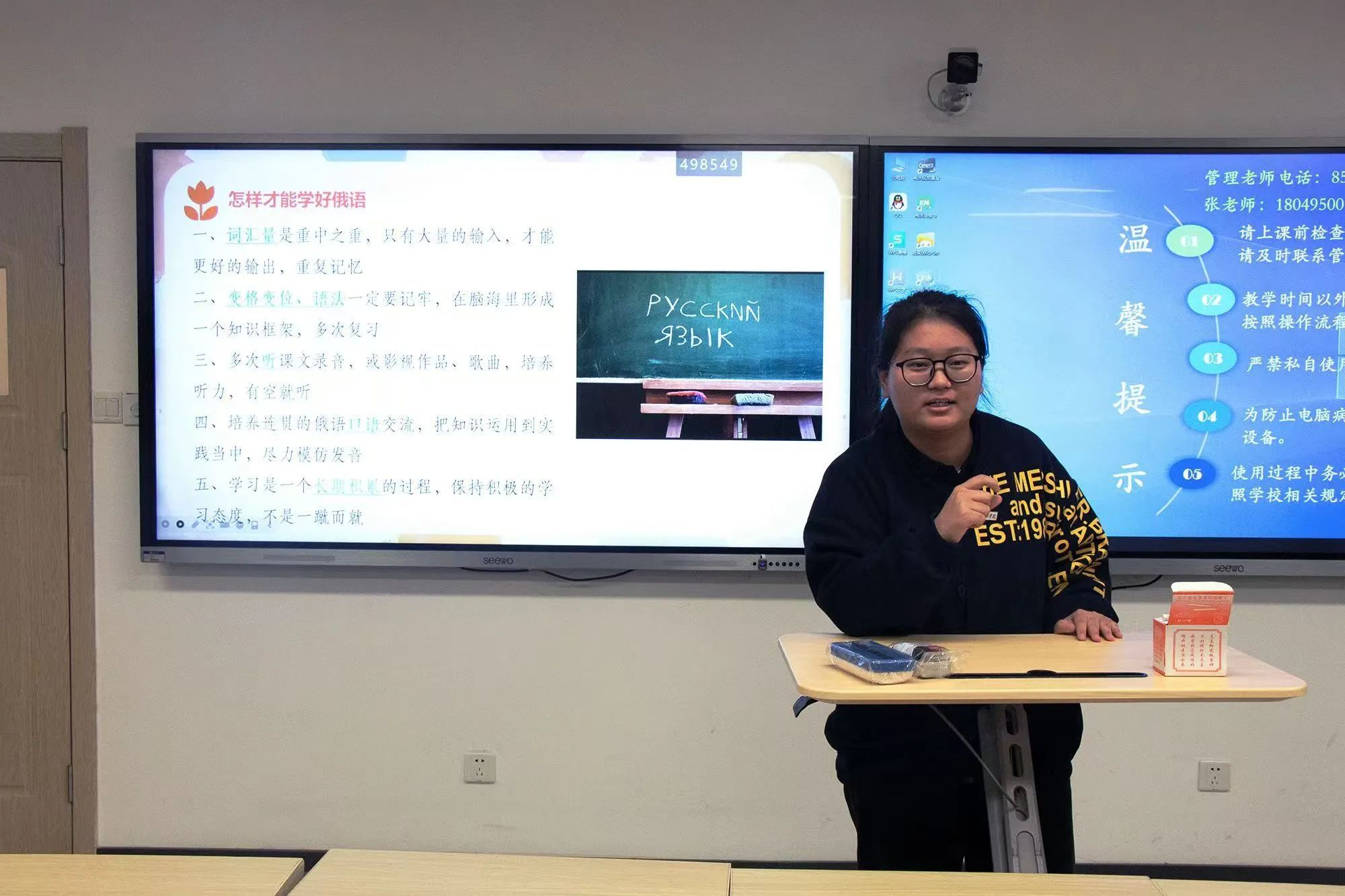 俄语专业代表郏冰冰以大学生活、专业学习、课外实践、科研竞赛为主线,全面介绍了俄语学习中可能遇到的挑战,并为新生提供了实用的解决方案。她强调,在学习过程中不能有丝毫懈怠,必须全力以赴,循序渐进,培养良好的学习习惯以适应大学的学习节奏。在答疑环节中,她以幽默风趣的语言,拉近了与新生的距离。