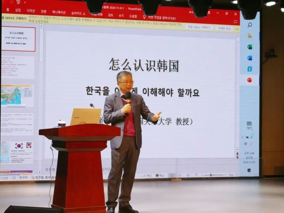 讲座伊始,李奎泰教授从个人学习经历出发,分享自己在学术探索过程中积累的宝贵经验。他从韩语起源的角度深刻阐释了中国学生学习韩语的优势,在增强学生学习韩语自信心的同时,提出跨文化认识的三个步骤,鼓励学生从不同维度理解文化差异性。李奎泰教授指出,一要以学习的眼认识韩国、二要以中国的眼认识韩国、三要以韩国的眼认识韩国,做到由浅入深,循序渐进。为学生开辟了一条全新的学习道路。