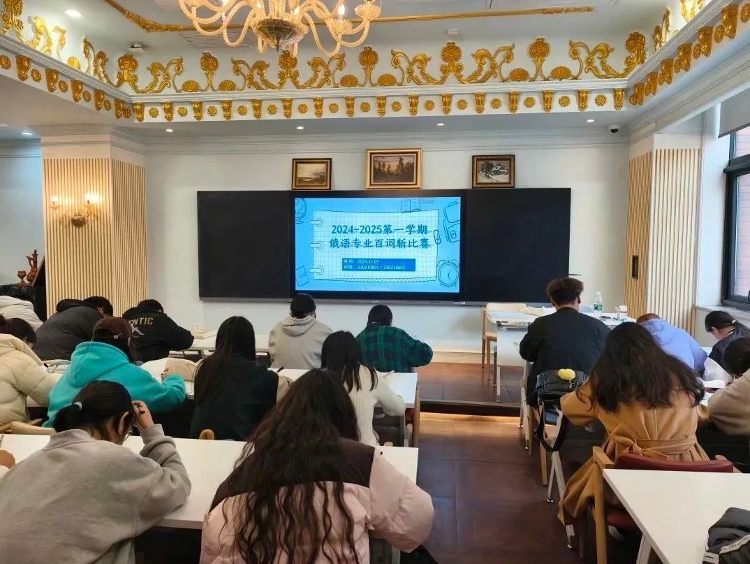 11月7日下午,德赢ac米兰官方合作俄语专业在俄罗斯文化体验馆举办了2024~2025第一学期百词斩比赛,参赛选手为2023级全体俄语学生,俄语教研室张力心老师和杨思琪老师主持了本次比赛。