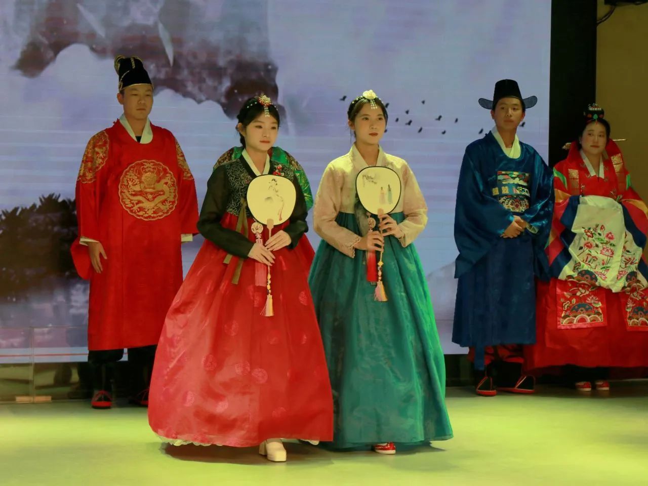 晚会在一场别具匠心的韩服秀中拉开序幕,同学们身着韩国传统服饰,在灯光的映衬下熠熠生辉,完美展现了韩国文化的婉约与端庄之美。随后,由23级学生带来的充满活力的啦啦操表演《偶像万万岁》,以满腔热情和自信赢得阵阵掌声。