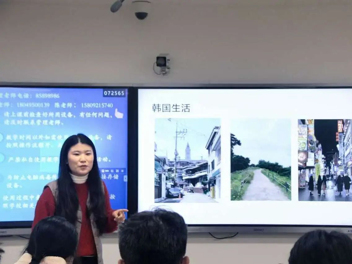 最后,马翠萍老师介绍了她的留学经历以及在庆熙大学的生活趣事。她为学生们展示了自己拍摄的庆熙大学风景照,同时也分享了在韩国生活的精彩瞬间,她希望大家有机会都能够走出去,看看外面的世界。