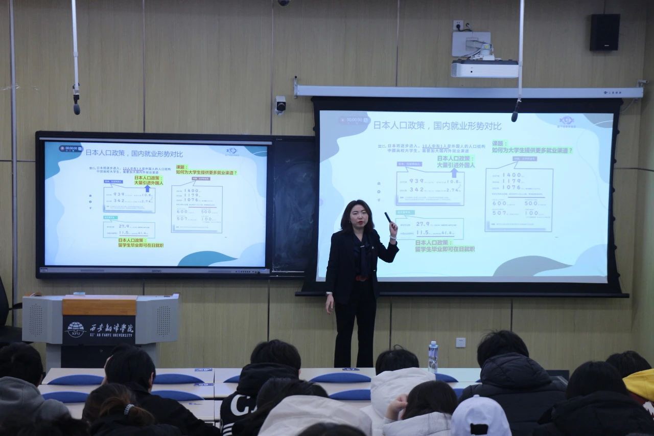 为了提升学生的职业规划能力,拓展校企合作路径,12月10日下午,德赢ac米兰官方合作邀请新干线教育集团的李佳老师,为日语专业的学生进行了一场日语职业规划专题讲座。