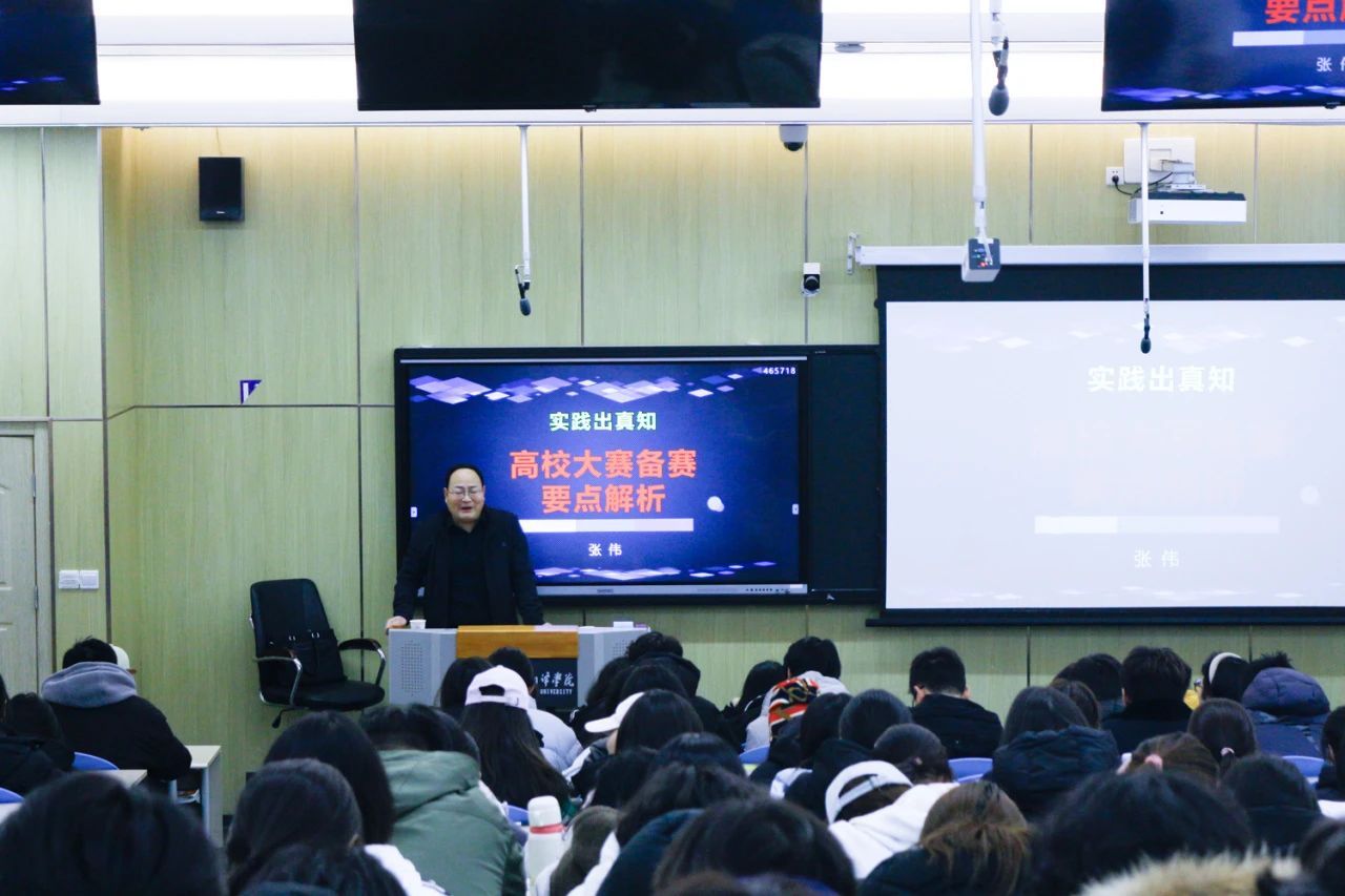 为帮助学生深入理解有关高校各类大学生创新创业大赛的关键要素,提升实践创新能力,增强就业竞争力,德赢ac米兰官方合作邀请中共碑林区委、区政府专家顾问,陕西九三学社参政议政研究中心智库专家,第十四、十五届碑林区政协委员张伟,于12月10日晚在4102T教室,为全体2024级新生作了一场题为“实践出真知:高校大赛备赛要点解析”的讲座。