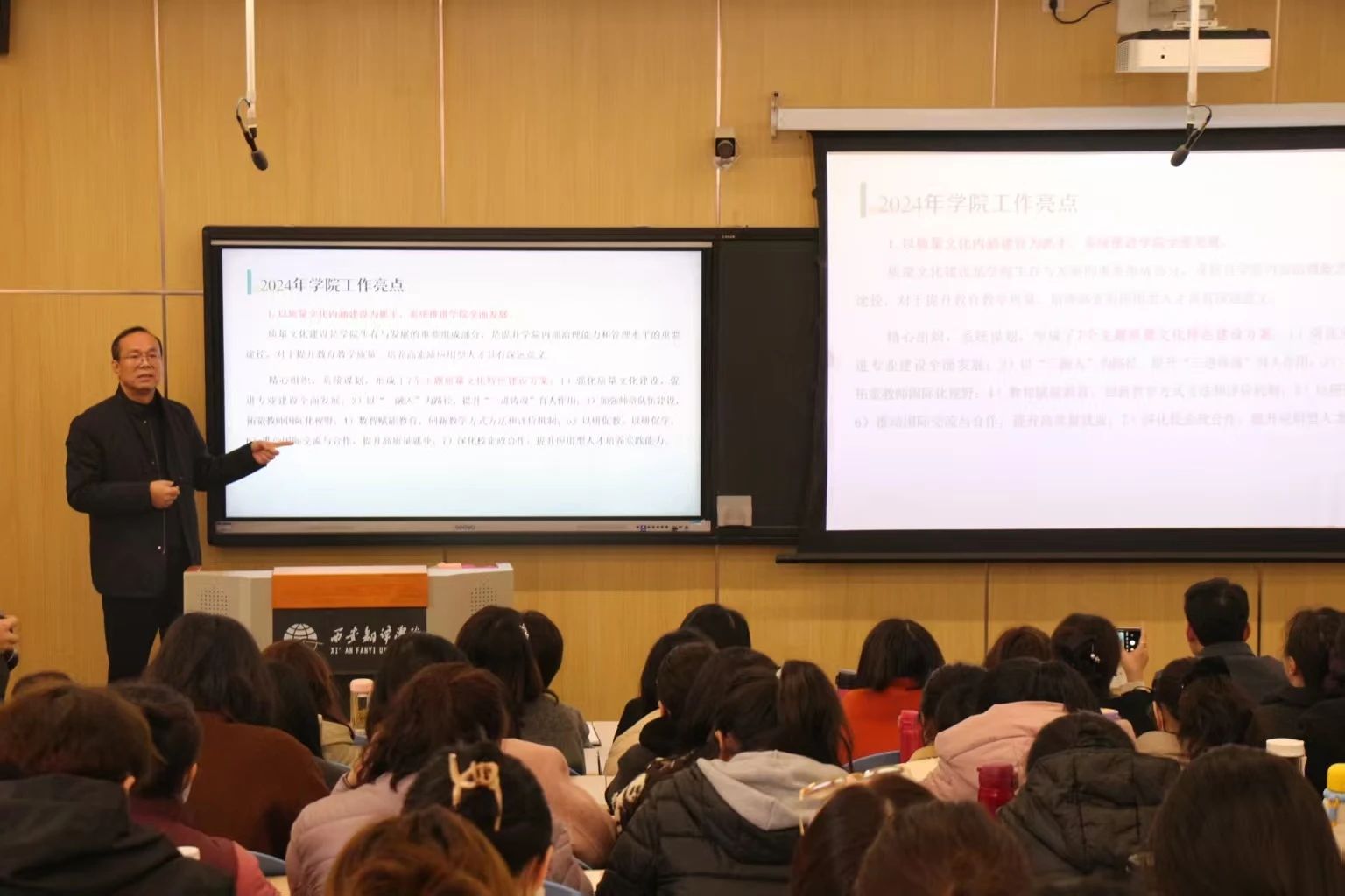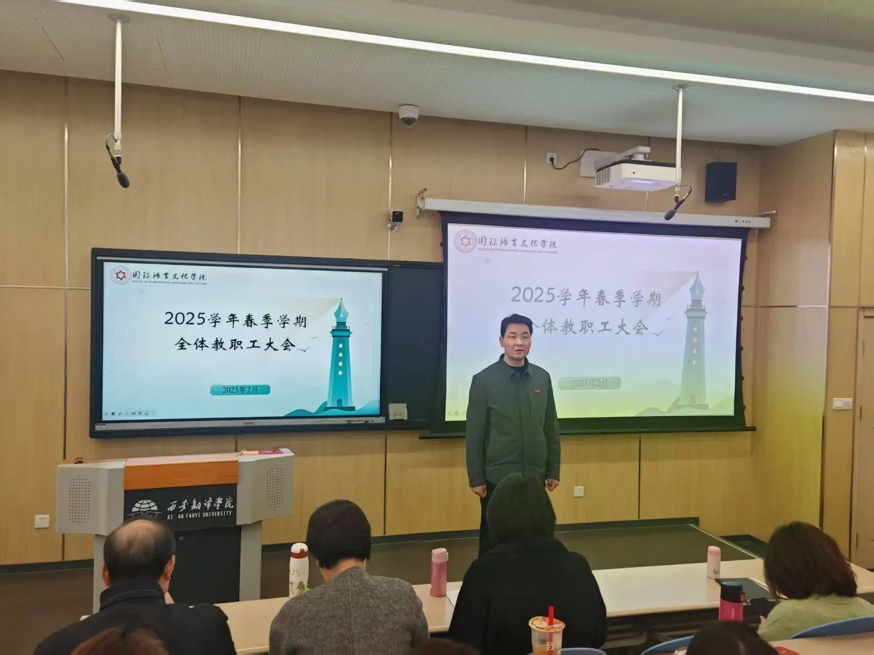 2月28日下午,德赢ac米兰官方合作召开2025学年春季学期全体教职工大会,旨在全面总结2024年工作,部署2025年重点工作。学院党委书记、副院长宇文永康主持会议,学院领导班子成员及全体教职工参加会议。