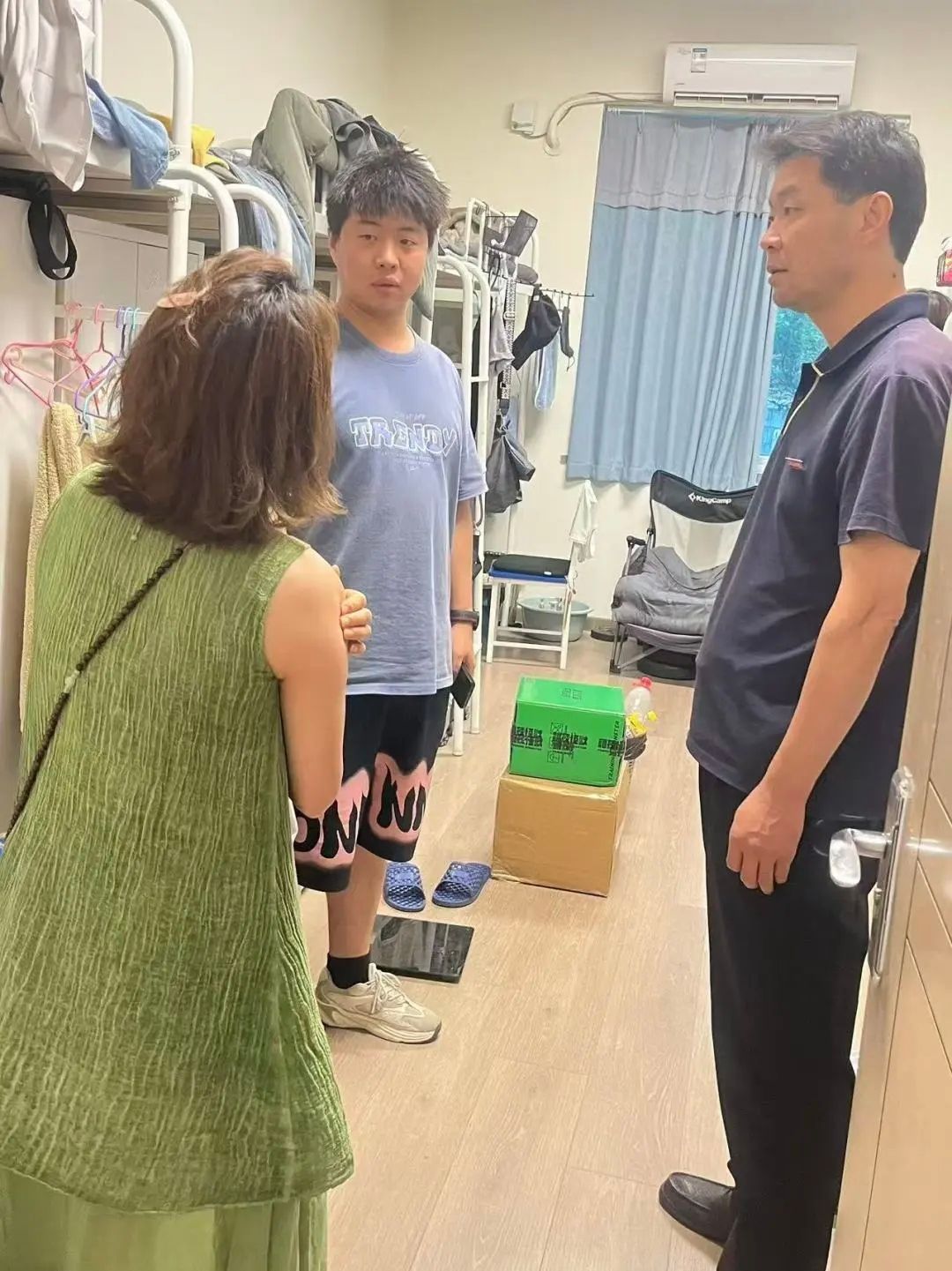 走访过程中,学院领导与辅导员们不仅送上了防暑降温用品,还对宿舍的卫生状况、消防安全设施、电器使用情况等进行了细致检查,并结合前期暑期安全教育主题班会的内容,现场再次进行了安全提醒和教育。