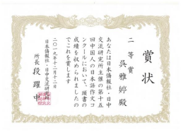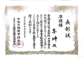 另外,还组织学生参加韩国总领事馆、韩国企业及陕西省政府部门、相关专业院校主办的多项语言文化比赛,朝鲜语专业学生在校外举办的韩国语演讲比赛中屡屡斩获优异成绩。2019级周亦可、张珂辉、潘柳婷在第三届“总领事杯”西北三省韩国语演讲大赛中获得铜奖;2019级陈静在第十四届山东省大学生科技节科技翻译大赛中二等奖;2018级王佳音在第二届“总领事杯”西北三省韩国语演讲大赛中获得银奖,18级段曌获得铜奖, 2017级郝丹在第一届“总领事杯”西北三省韩国语演讲大赛中获得银奖,2016级李欣在陕西省中国大学生韩国语演讲比赛中获得铜奖,2015级王品懿、2014级梁顺姬在“锦湖韩亚杯中国大学生韩国语演讲大赛”中获三等奖,2013级李思睿在韩国驻西安总领事馆主办的韩国语演讲比赛中获得铜奖。
